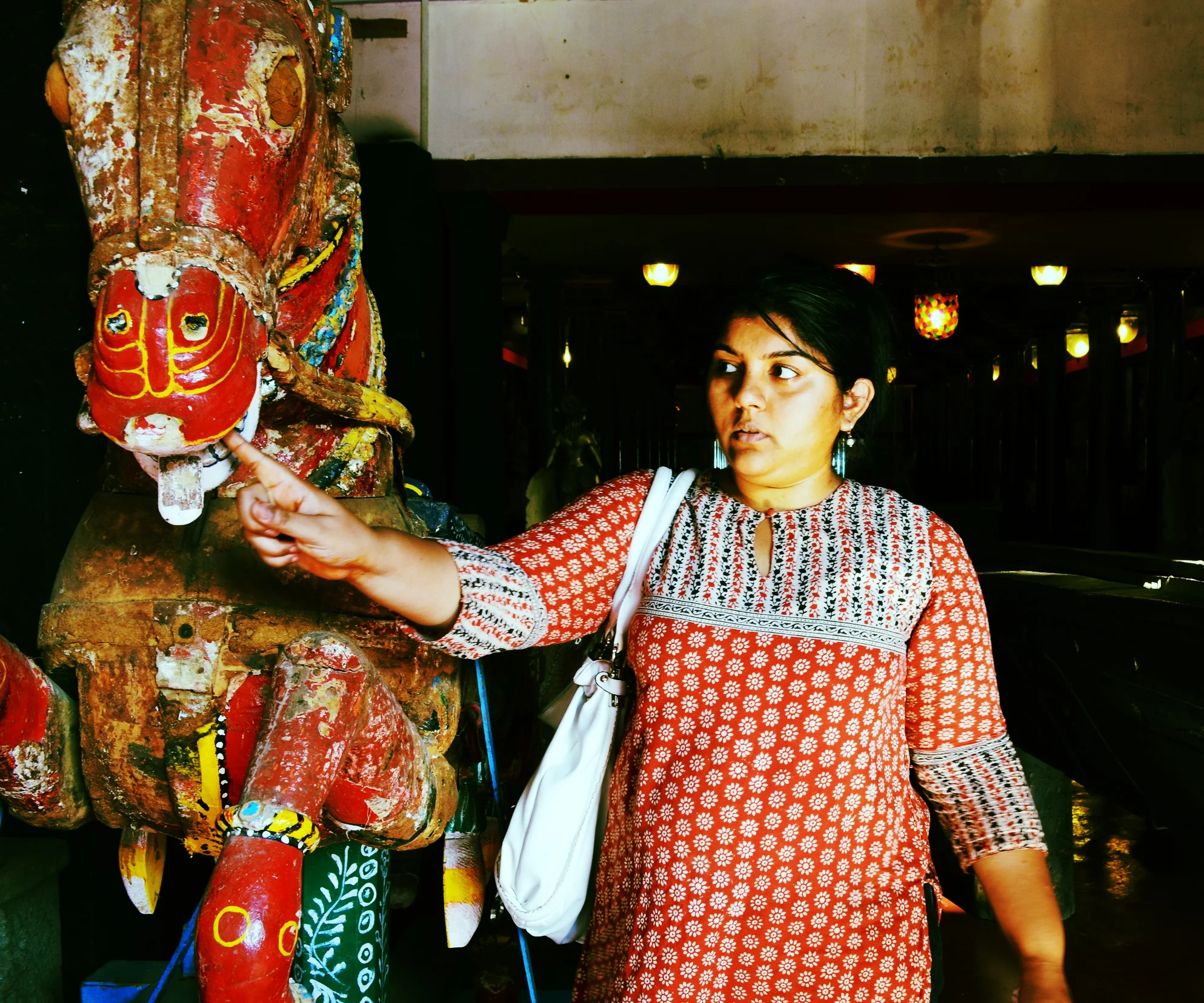 I could not help myself. I had to poke the wooden rearing horse in his mouth. His teeth were much sharper than I anticipated. --At Fort Kochi's "Jew" Town with a decidedly spirited horse (Kerala, India, Winter 2013)